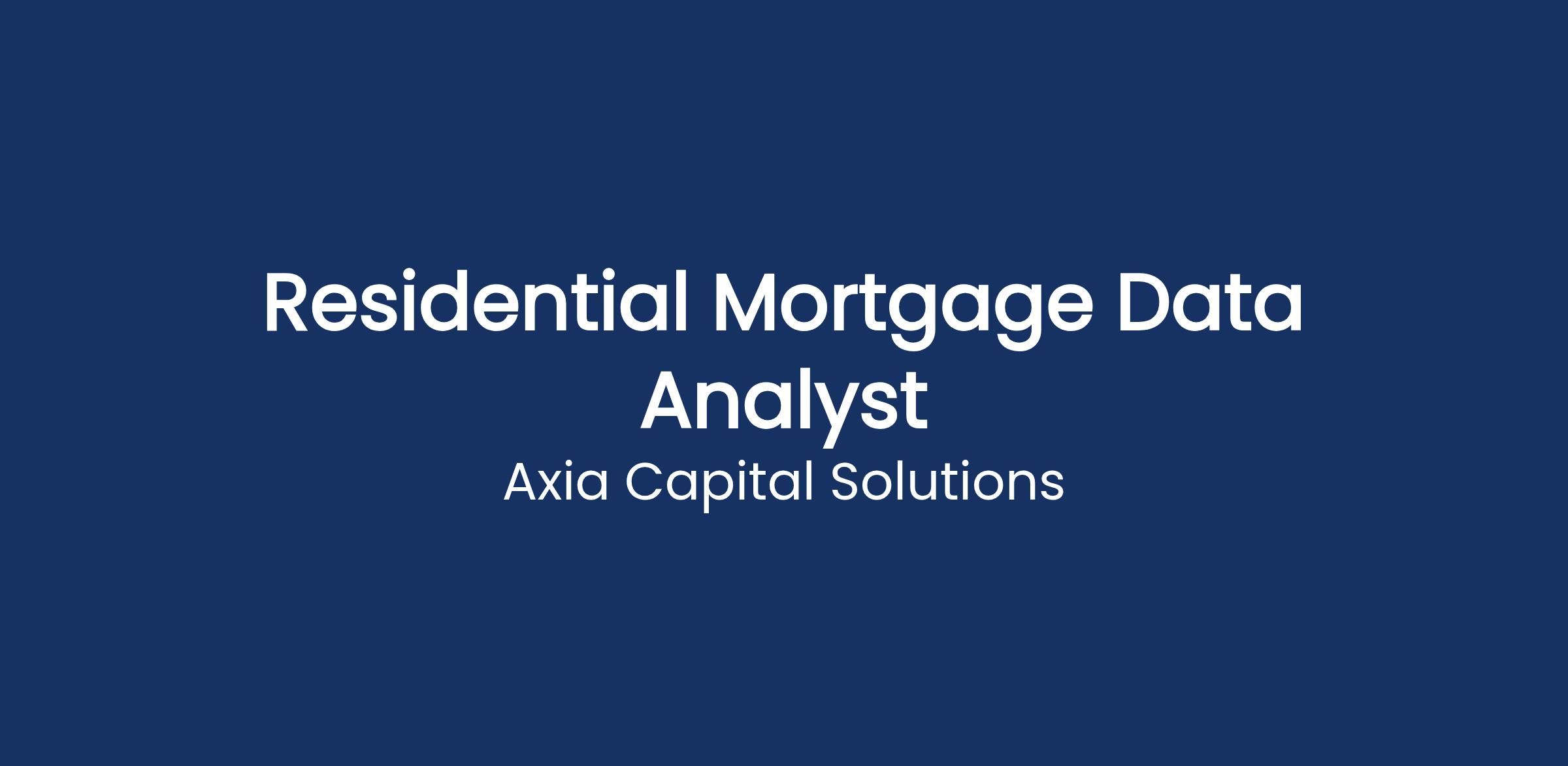 Axia Capital Solutions (“Axia”) is a full-service transaction and portfolio management platform that leverages deep subject matter expertise and modern technology to assist clients with the acquisition, management, and disposition of mortgage and mortgage-related assets. We have significant growth objectives enabled by the backing and mandate of affiliates of Apollo Global Management and are seeking an experienced and highly motivated Data Analyst to support our Transaction Management team in connection with the acquisition, management, and disposition of residential mortgage loans for a trading and portfolio management business. This role is critical for the management of data throughout a variety of transaction workflows required to successfully execute trades. The ideal candidate thrives in a creative, fast‑moving environment and is comfortable managing data, analytics, reporting, and communications at scale.