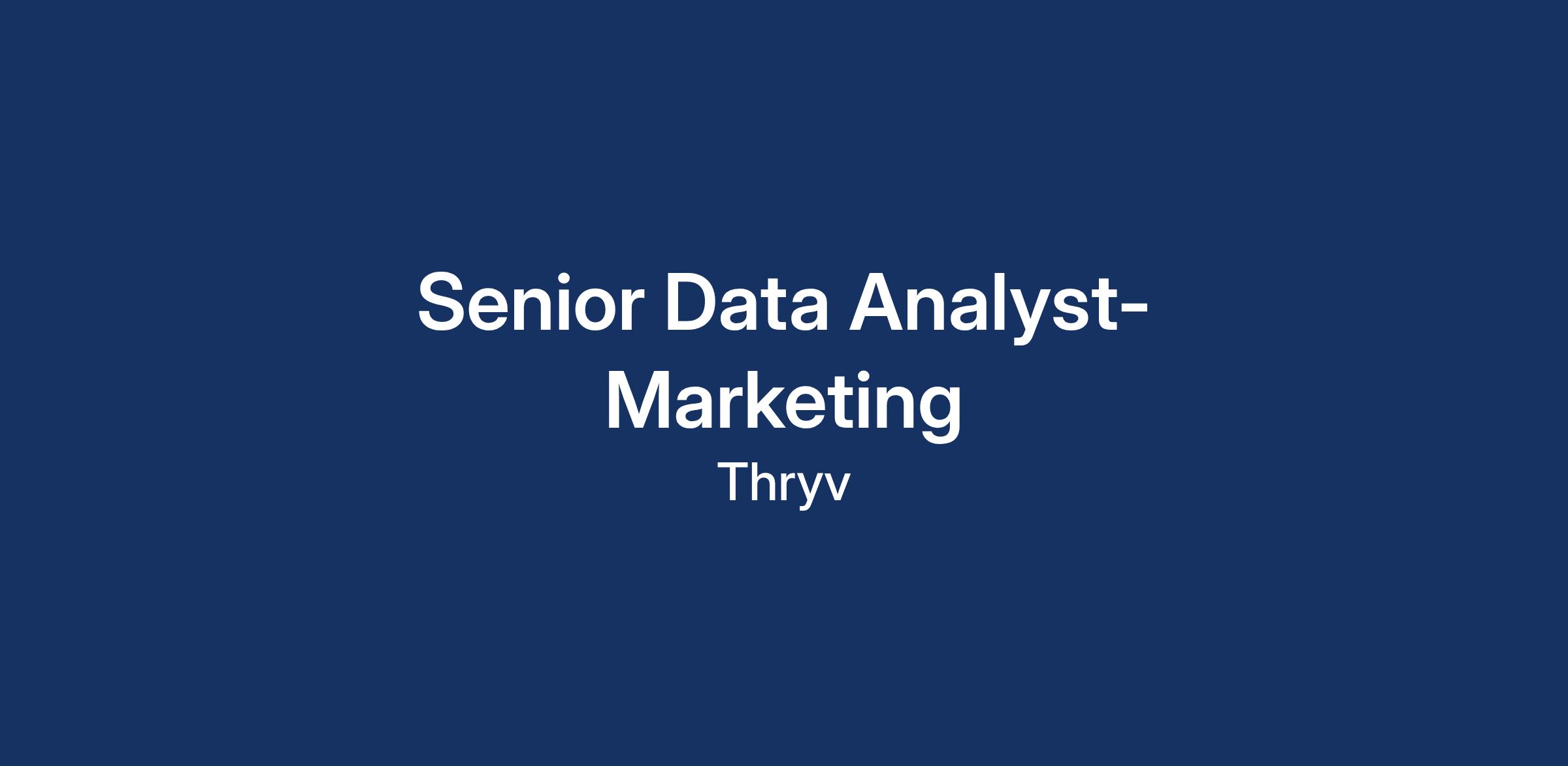 The Senior Data Analyst, Marketing Analytics is the primary analytics partner for Thryv’s Marketing and Demand Generation teams. This role works closely with the CMO, Marketing leadership, and cross-functional partners to translate complex data into clear, actionable insights that improve performance, efficiency, and growth.