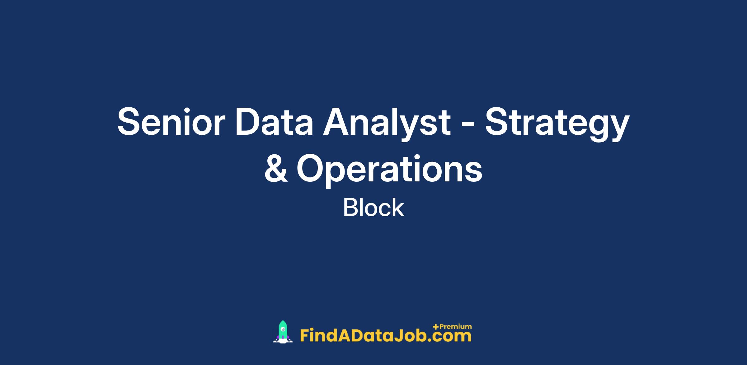 We are looking for a Business Intelligence (BI) Analyst to join the Strategy and Operations team within Square Financial Services (SFS), Block's Bank. You will focus on providing data insights surrounding our commercial lending operational teams' workflows to build upon and help drive the organization's strategy. You will also be leading the charge in making operational data accessible to the leadership team within SFS. As a Senior Data Analyst, you will often interface and collaborate with Operations team leads, product managers, engineers and data scientists to influence business decisions.